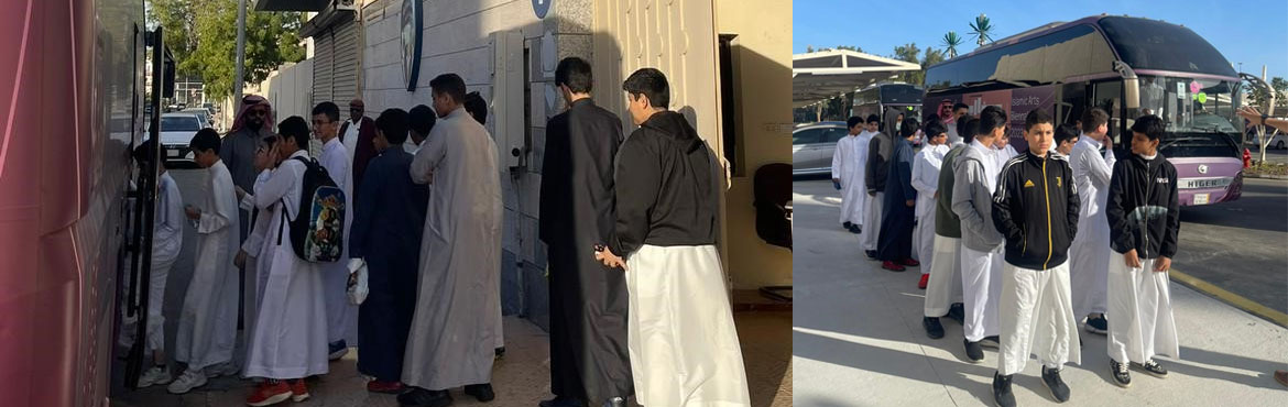 ويتمتع مجمع المدارس بجميع أقسام سواء أكانت بنين أو بنات بأسطول من أحدث الحافلات المكيفة تقدم خدمة على مستوى عال من الراحة والأمان وسائقين ومشرفين علي قدر كاف من الخبرة في التعامل مع الطلاب وخدمتهم حيث يوجد في كل حافلة مشرف علي الطلاب أثناء الذهاب وعند الحضور وتتوزع هذه الباصات جغرافيا في جميع مناطق وأحياء جدة كل بخط سير محدد له.