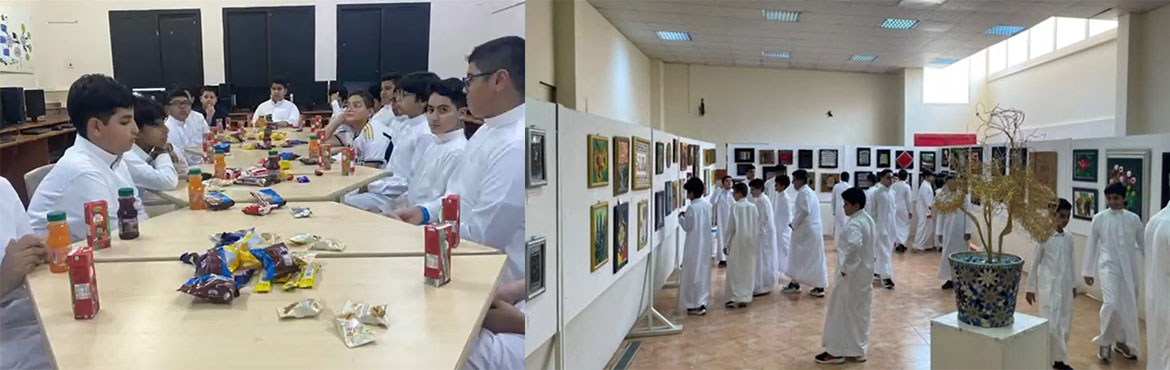 ثالثا معمل الفنية :ورشة عمل للفنية معّدة بشكل جيد ومجهزة بلوازم الأعمال الفنية المختلفة والفنون التشكيلية والتي تساعد على إبراز قدرات وإبداع الطالب ومعاونته في الرسم